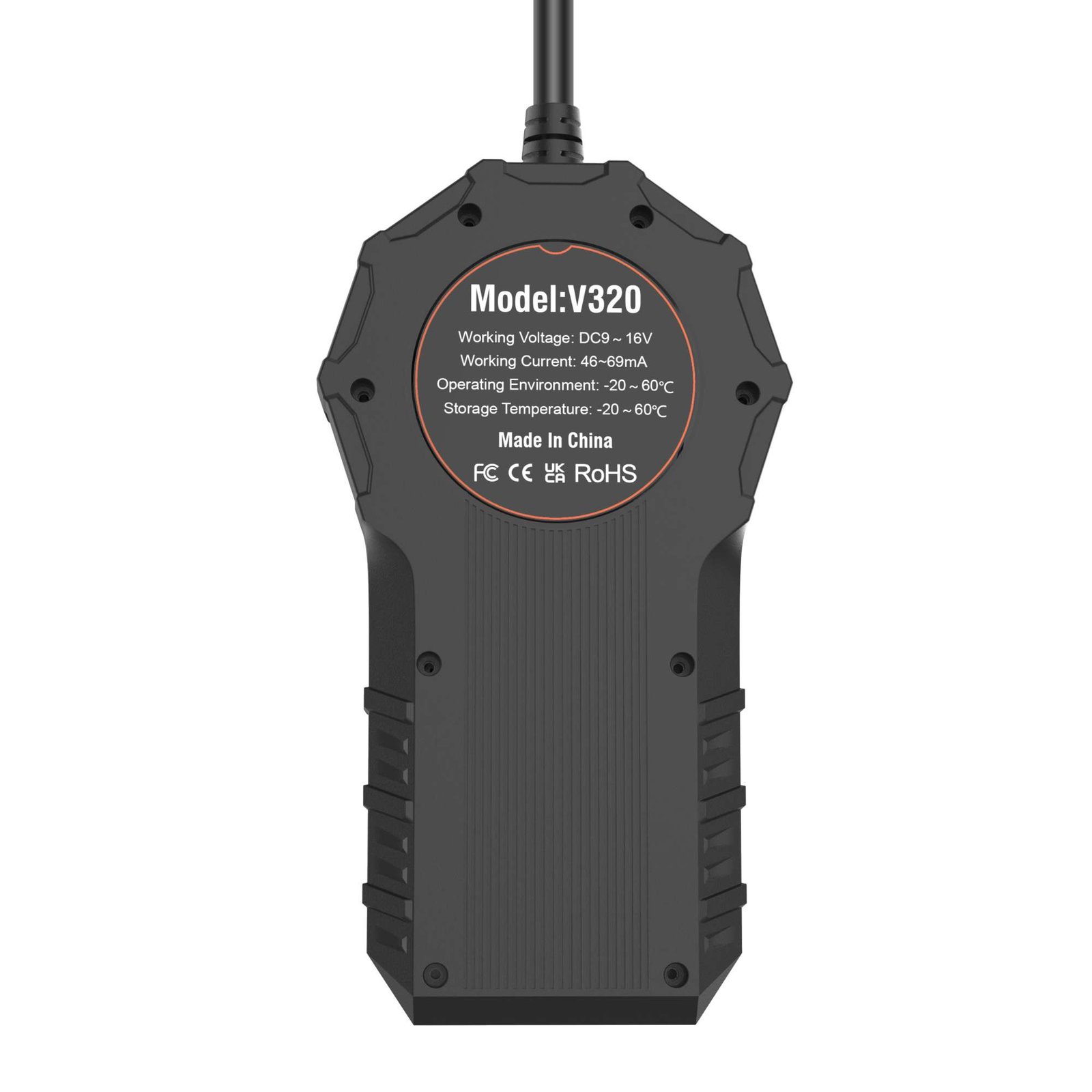 V320 combines code reading with Freeze Frame, readiness status, vehicle information, live data, and battery voltage viewing. O2/EVAP support plus built-in performance test functions add more value for users who want both diagnostics and quick performance-related checks.