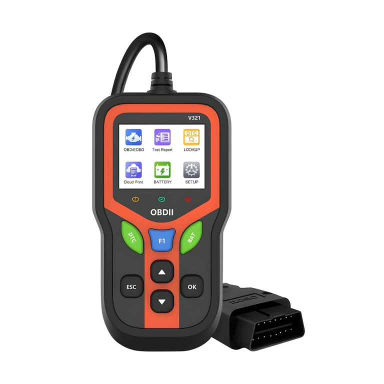 V321 brings together DTC read/clear, live data, Freeze Frame, readiness status, and vehicle info with shortcut-driven access to common tests. Cloud printing, diagnostic reports, and battery start testing make it one of the more fully equipped handheld models in the range.